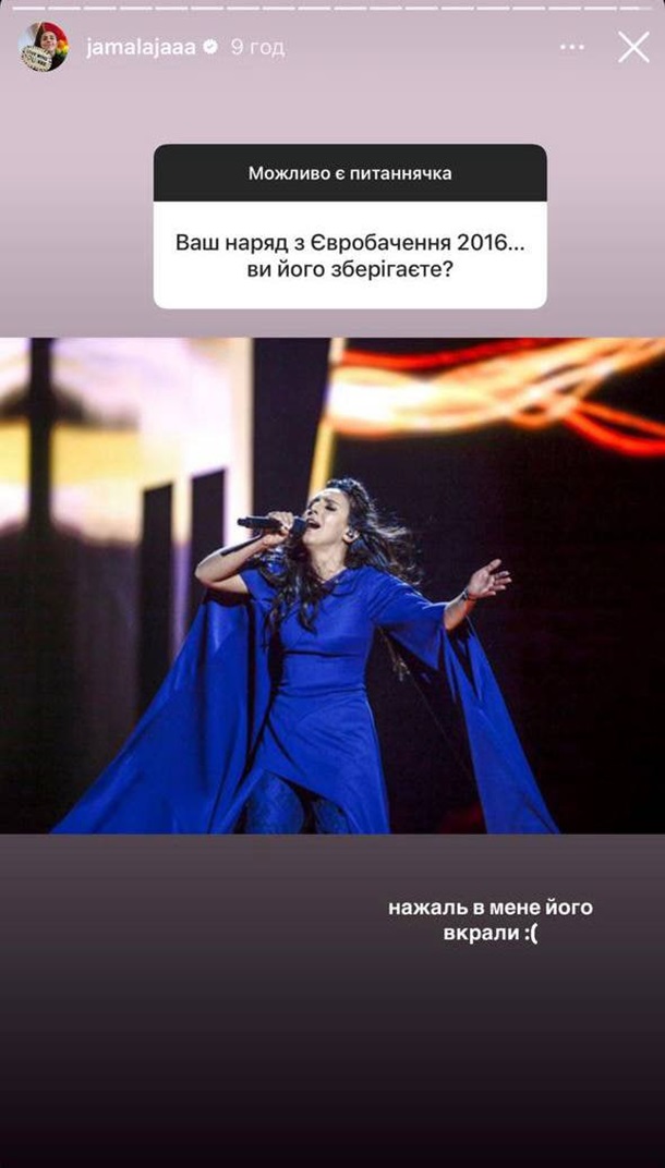 Після тріумфу на конкурсі сценічне вбрання певний час зберігалося в музеї ABBA у Стокгольмі – як символ перемоги України. Згодом його повернули Джамалі. Однак де саме сталася крадіжка та за яких обставин – співачка наразі не розкриває.